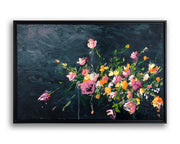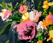 This brightly colored bouquet against the deep dark blues and grays excite my senses and bring me joy.