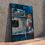 36インチ x 48インチ キャンバスにアクリルと銀箔を施した作品。